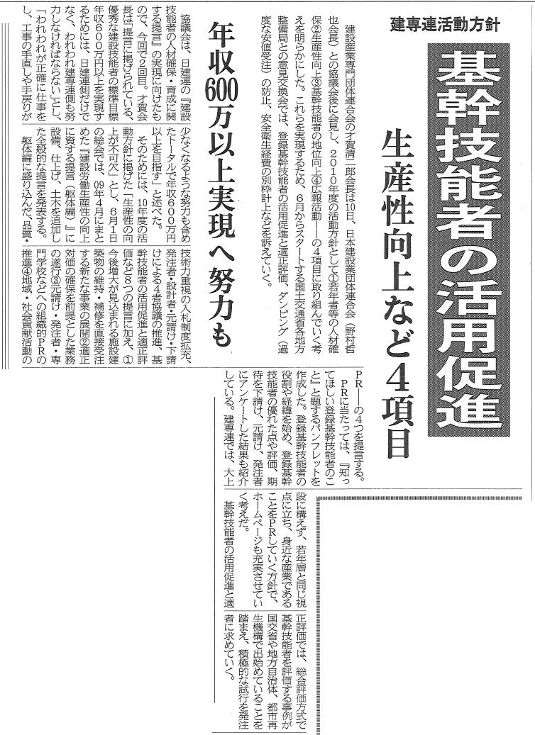 2010/05/11 基幹技能者の活用促進、生産性向上など4項目/建専連活動方針