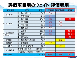 ③国交省工事 局長表彰受賞現場レポートの冒頭では、工事成績評点での各評価項目の