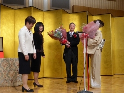 引き続き岐阜県行政書士会事務局のお二人により花束贈呈が行われた。