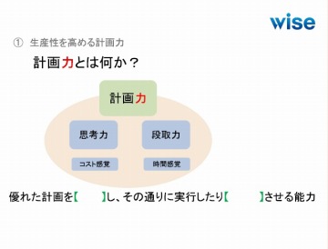 後半は、「現場代理人に必要な能力と伸ばし方」と題し、生産性を高めるための計画力や交渉の技術について、解説させていただきました。
