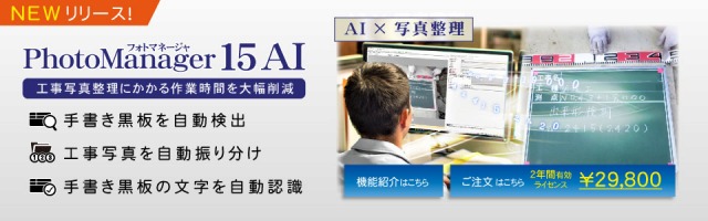 研修の中で紹介させていただきました「PhotoManager15 AI(フォトマネージャ)」は、AIの画像解析機能を搭載した工事写真管理ソフトです。