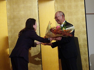 来賓祝辞の後、発起人を代表し広島支部長の中野幸恵先生から花束贈呈が行われました。