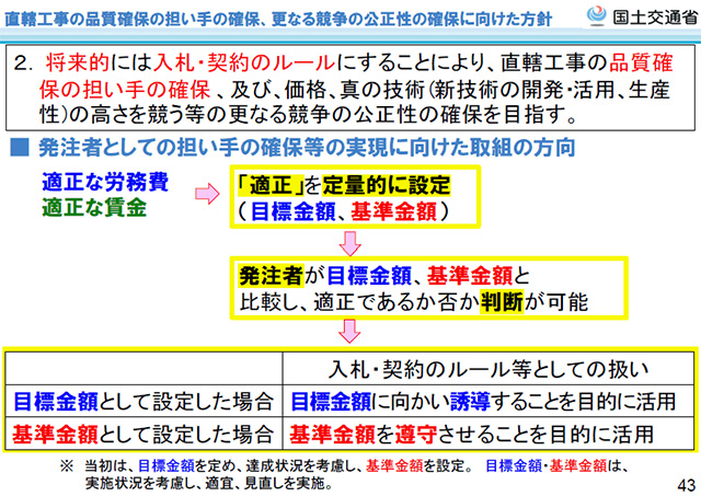 第2部は、 「品確法等の改正を踏まえた担い手の確保等の取組」と題し、建設業界が置かれている労務上の問題点や課題、直轄工事における工事価格や労務費・労働時間・賃金の把握について、今後、国土交通省が推進する標準労務費の考え方を中心に、国土交通省 大臣官房 技術調査課 建設システム管理企画室長 関健太郎様よりご講演いただきました。