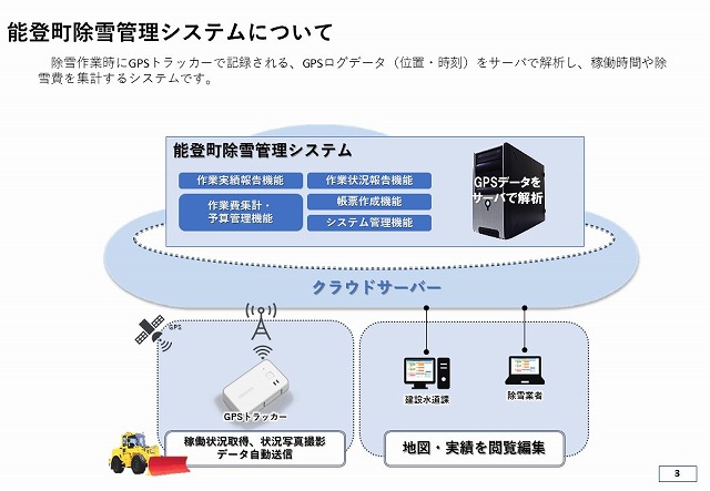 「能登町除雪管理システム」は、除雪や凍結防止剤散布業務の管理システムです。