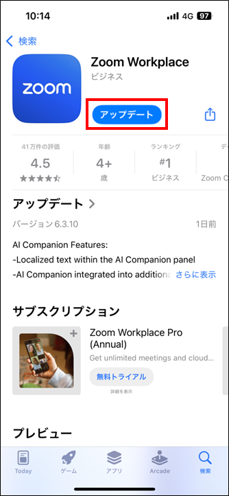 「Download from App Store」ボタンが表示された場合は、Zoomアプリのアップデートを行う必要があります。